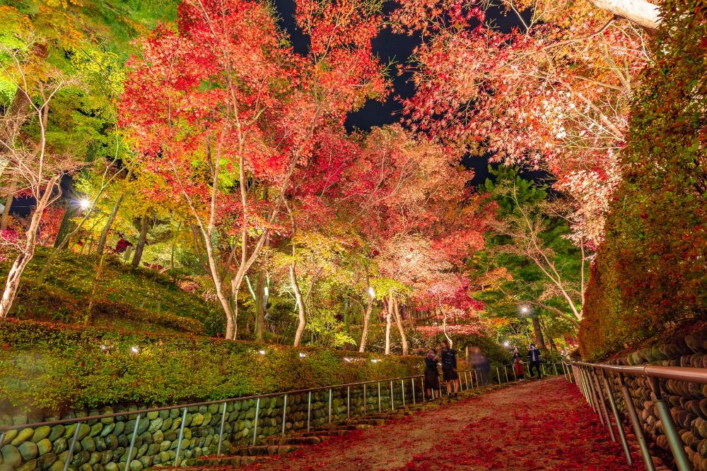 夜間ライトアップを巡るプランにすれば、昼と夜で異なる紅葉の表情を楽しめます。